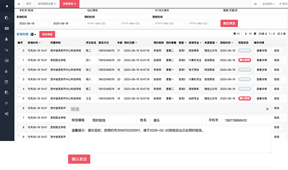 這樣信息記錄就更加全面,并且擁有客戶回訪提醒和回訪記錄功能,實現了學校客戶資源管理計算機化、標準化、自動化。